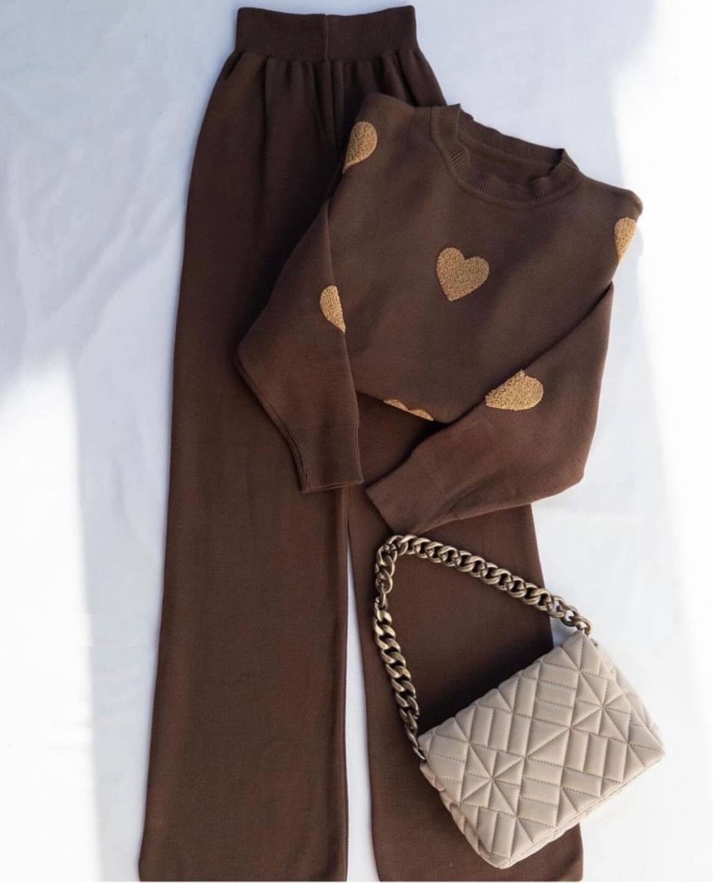 Головна » Магазин » Одяг » Жіночі костюми » Теплый уютный костюм из ангоры (свободные брюки+кофточка принт сердечки) шоколад