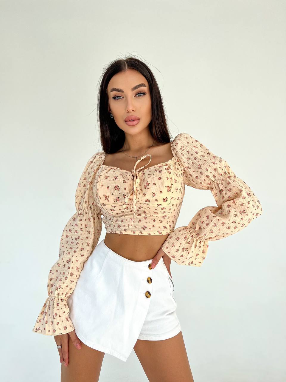 Головна » Магазин » Одяг » Верхнє тіло тіла » Топ из натуральной ткани принт персик