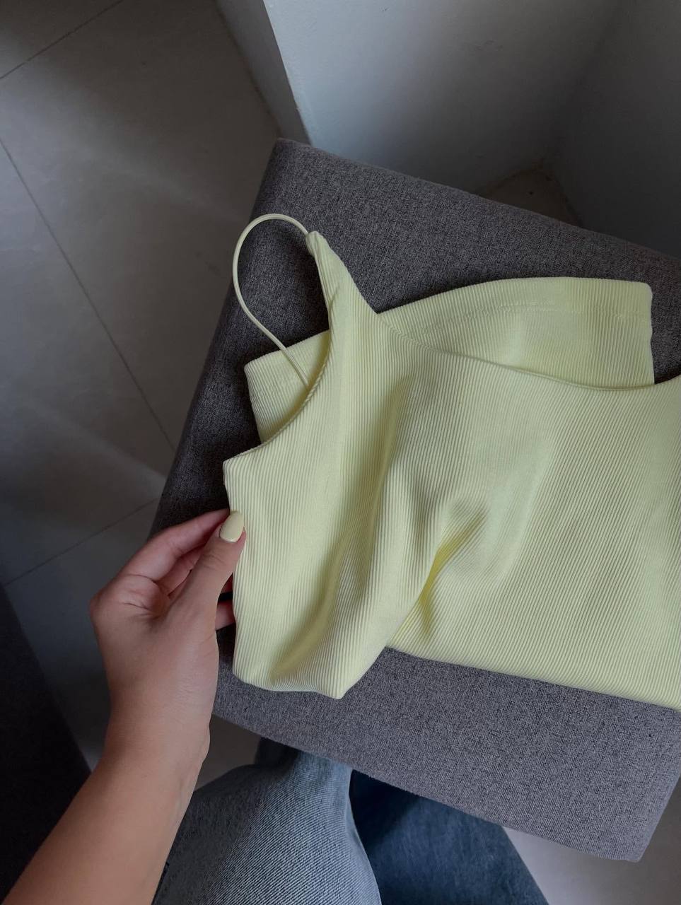 Головна » Магазин » Одяг » T -сорочки Майкі » Топ на тонких бретелях в рубчик лимон