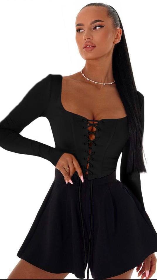 Топ со шнуровкой на декольте смотрится очень привлекательно!