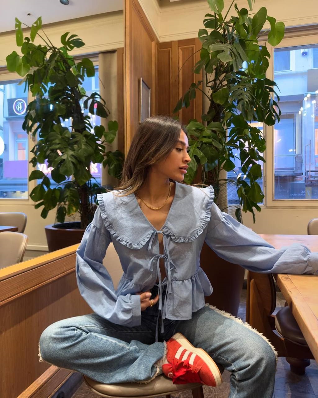 Головна » Магазин » Одяг » Куртки сорочки » Трендовая лляная рубашка с завязками голубой