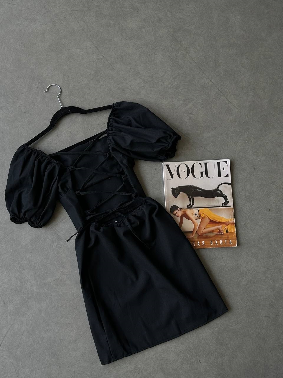 Будьте першим, хто залишив відгук “Трендовое платье со сборками спереди и завязками на спинке черный”“