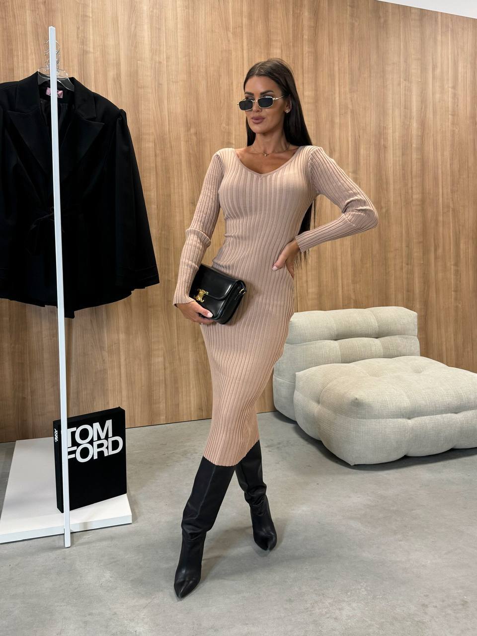 Головна » Магазин » Одяг » Сукня туніка сарафані » Трендовое платье в рубчик с V-образным вырезом беж