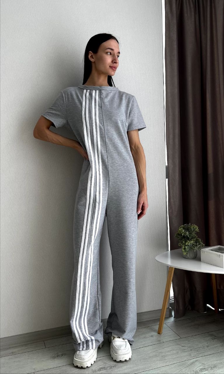 Трендовый комбинезон с боковыми лампасами двухнитка меланж
