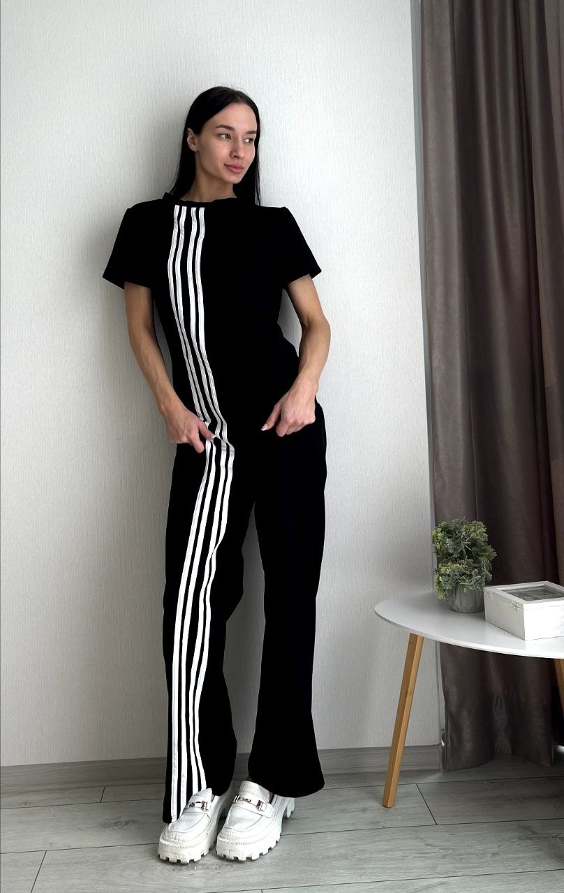 Трендовый комбинезон с боковыми лампасами двухнитка черный
