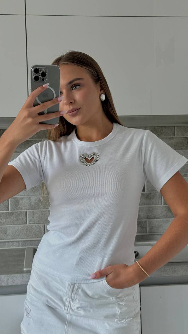Головна » Магазин » Одяг » T -сорочки Майкі » Трикотажная футболка с сердечком белый