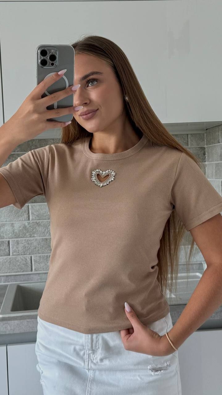 Головна » Магазин » Одяг » T -сорочки Майкі » Трикотажная футболка с сердечком бежевый