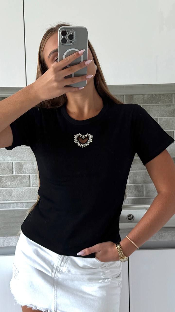 Головна » Магазин » Одяг » T -сорочки Майкі » Трикотажная футболка с сердечком черный