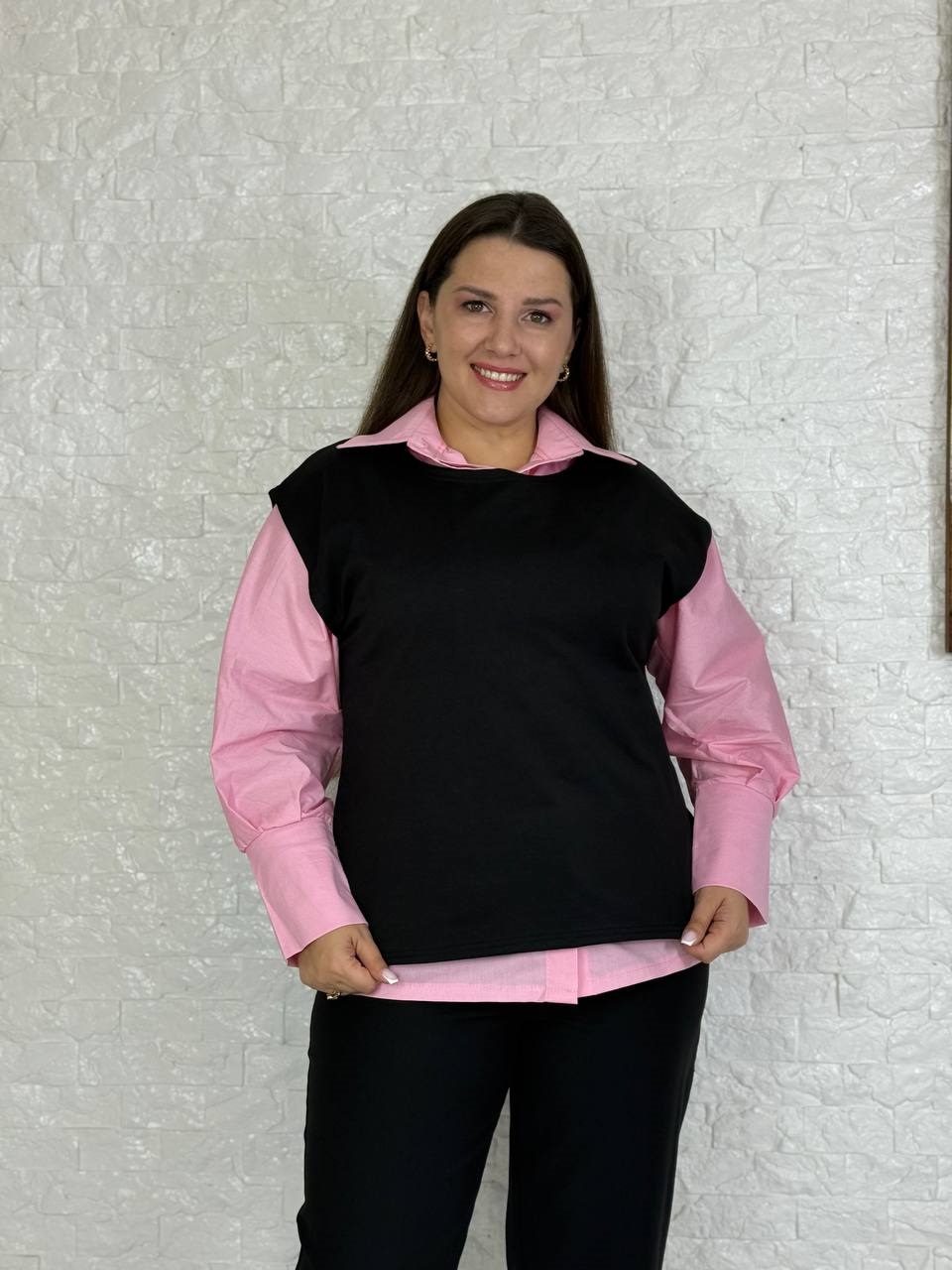 Можно носить с рубашкой, свитером, лонгсливом, футболкой