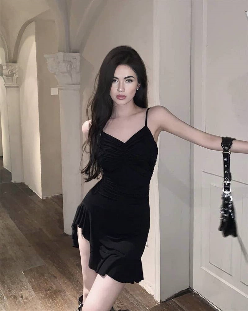Головна » Магазин » Одяг » Сукня туніка сарафані » Трикотажное эластичное Платье длиной мини с драппировкой по груди+воланом по низу черный
