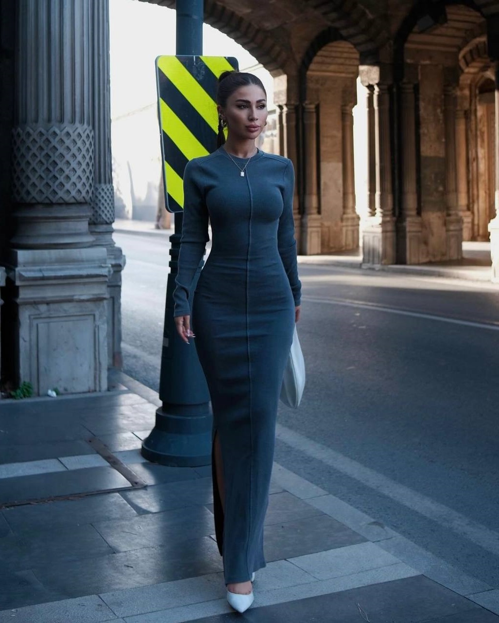 Платье макси из приятного к телу трикотажа. (цвет графит)