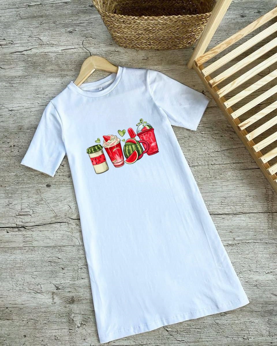 Головна » Магазин » Одяг » Сукня туніка сарафані » Трикотажное платье-футболка принт ВКУС АРБУЗА белый