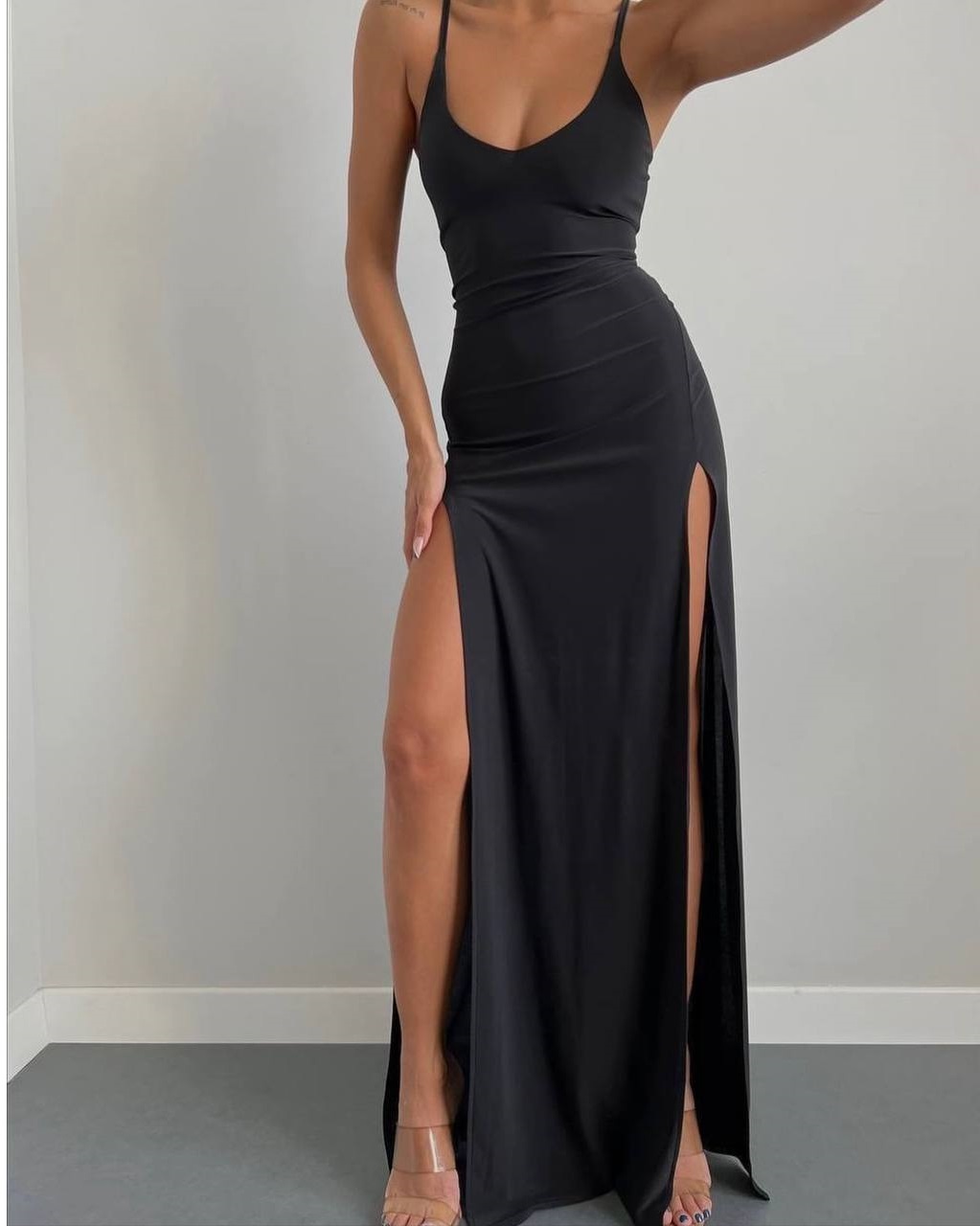 Головна » Магазин » Одяг » Сукня туніка сарафані » Трикотажное платье на бретелях с глубокими разрезами по бокам длиной макси черный