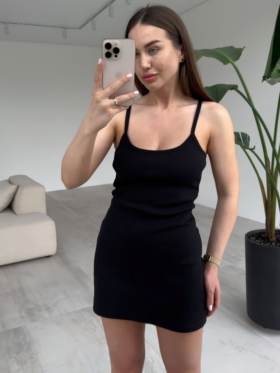 Облегающий крой, тонкие бретели, мягкая эластичная ткань подчеркивает фигуру и обеспечивает комфорт.