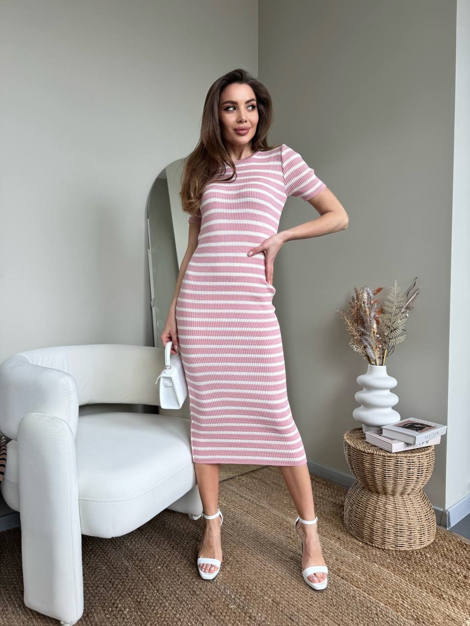 Будьте першим, хто залишив відгук “Трикотажное платье по фигуре длиной миди с коротким рукавом пудра в белую полоску”“