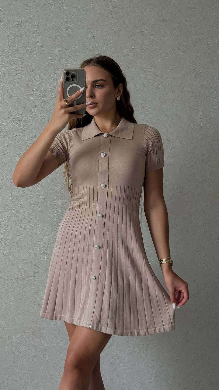 Трикотажное Платье приталеного силуэта длиной мини бежевый
