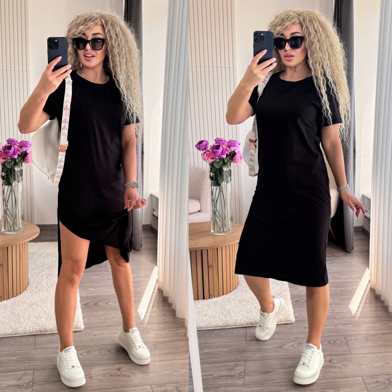 Трикотажное платье прямого кроя с разрезом по ножке черный