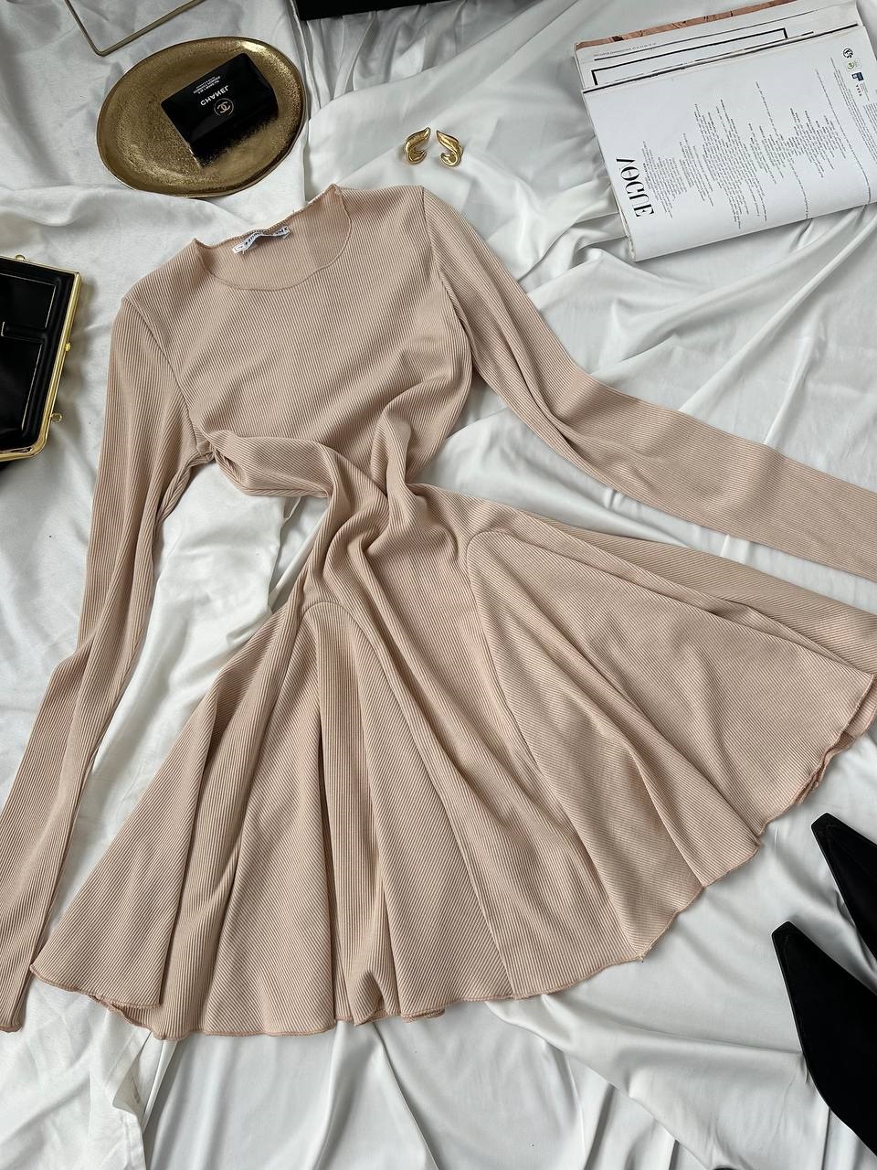 Трикотажное платье с расклешенной юбкой с воланами длиной мини бежевый