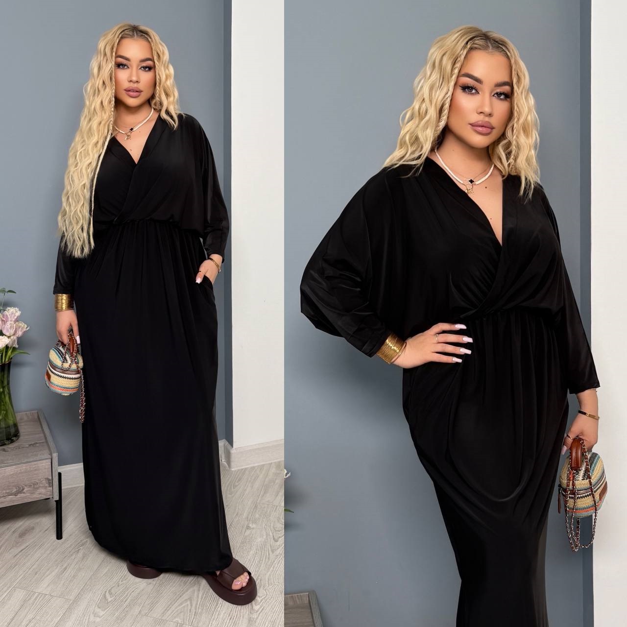 Головна » Магазин » Одяг » Сукня туніка сарафані » Трикотажное платье свободного кроя с запахом по груди+разрезом по ножке черный