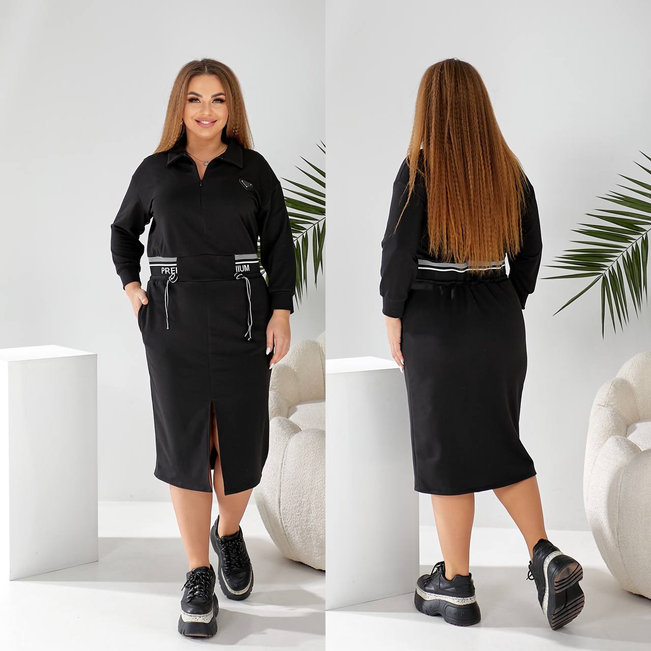 Трикотажное платье в стиле спорт шик на молнии+вшитым ремнем черный