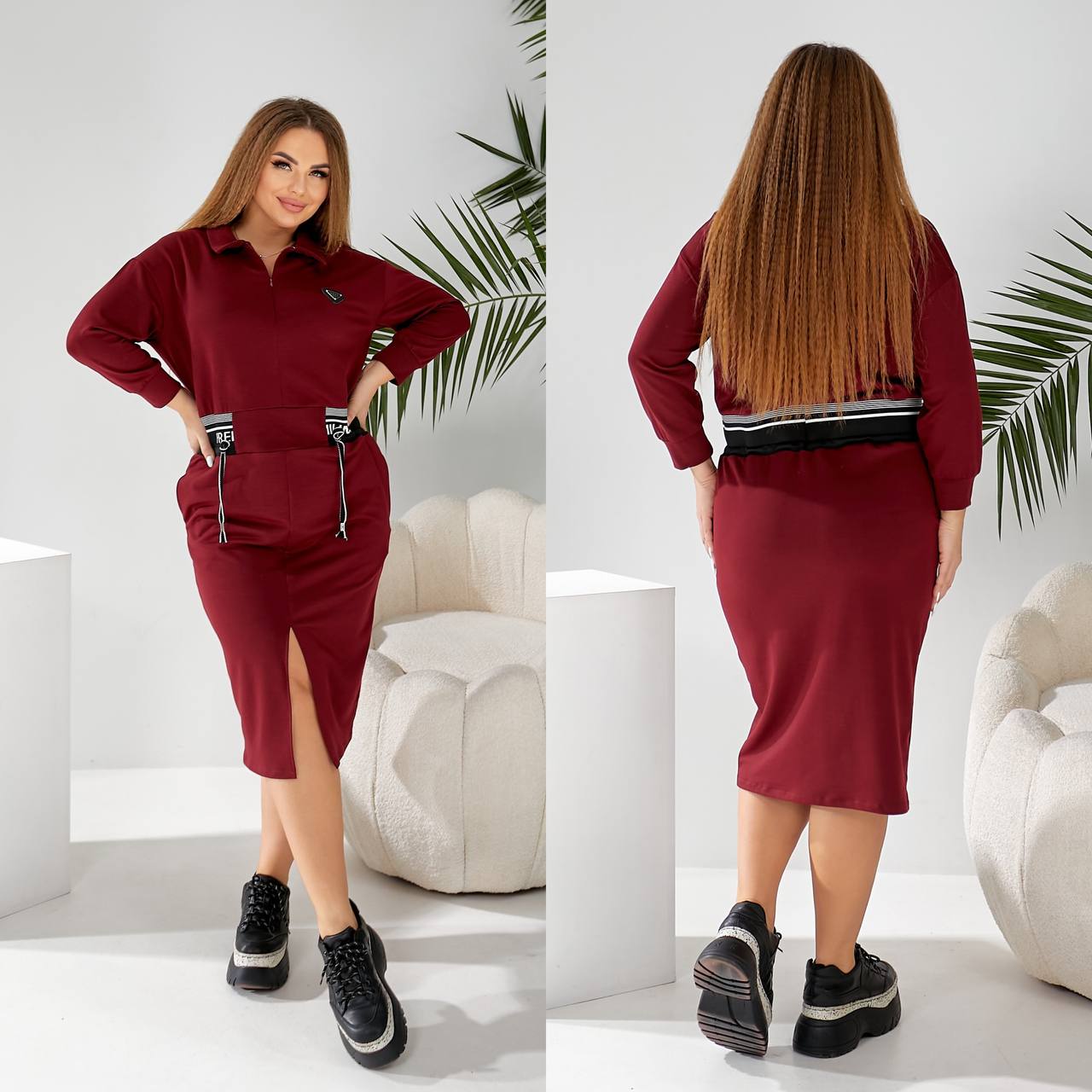 Будьте першим, хто залишив відгук “Трикотажное платье в стиле спорт шик на молнии+вшитым ремнем бордо”“