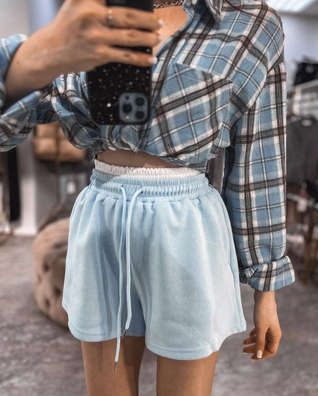 Головна » Магазин » Одяг » Спідниці шортів » Трикотажные шорты с двойным поясом голубой