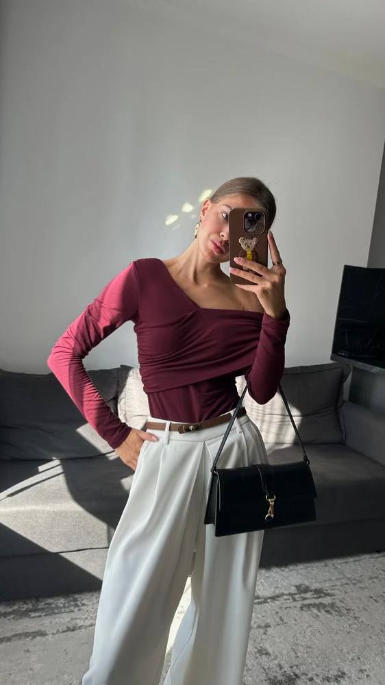 Трикотажный боди оригинального кроя бургунди