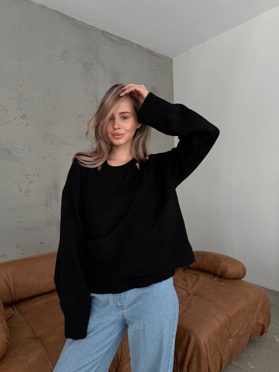 Трикотажный классный костюм (кардиган на запах застежка сбоку+топ) черный