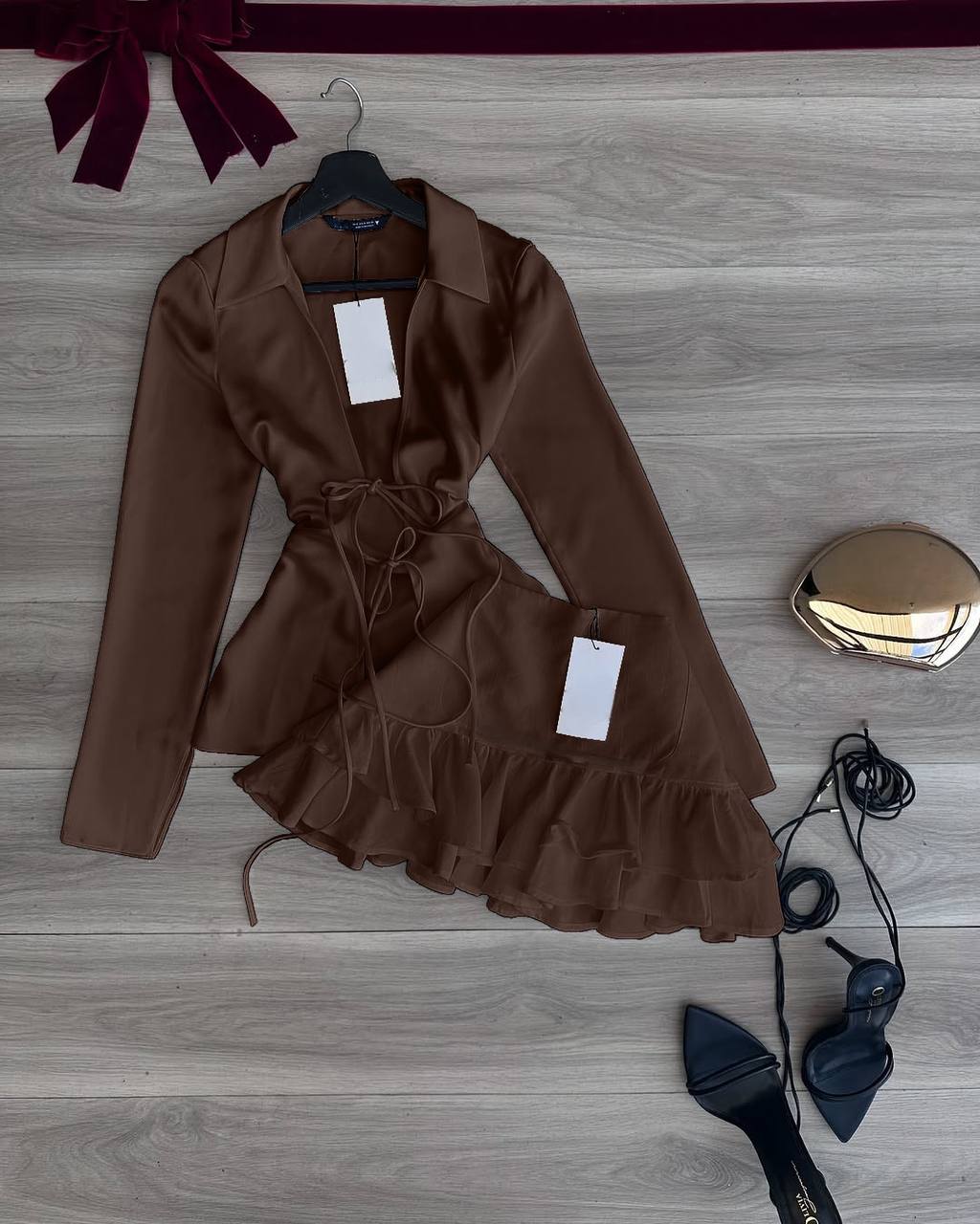 Трикотажный Комплект: рубашка на завязках+юбочка шоколад