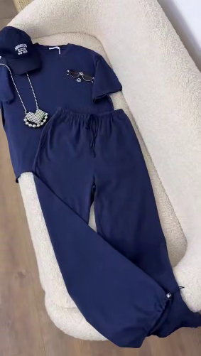 Головна » Магазин » Одяг » Жіночі спортивні костюми » Трикотажный костюм двухнитка (футболка+свободные брюки) темно синий