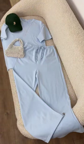 Головна » Магазин » Одяг » Жіночі спортивні костюми » Трикотажный костюм двухнитка (футболка+свободные брюки) голубой