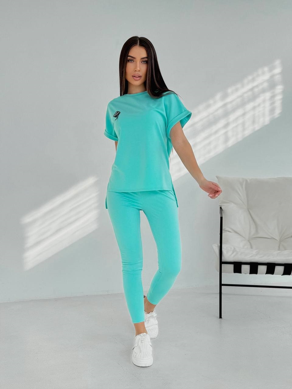 Головна » Магазин » Одяг » Жіночі спортивні костюми » Трикотажный костюм (футболка с нашивкой+лосины) мята