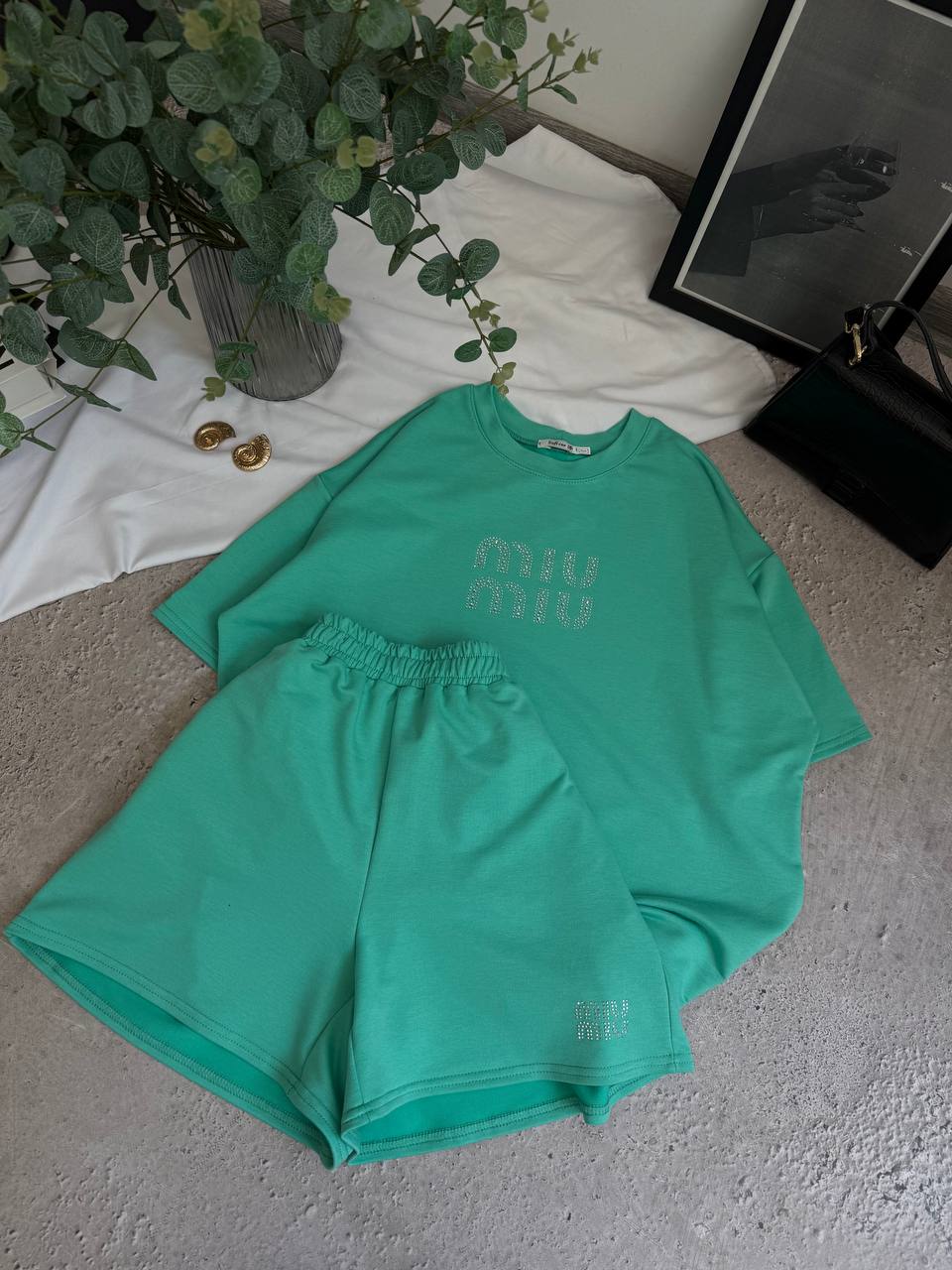 Трикотажный костюм из двухнитки (шорты+футболка свободного кроя) бирюза