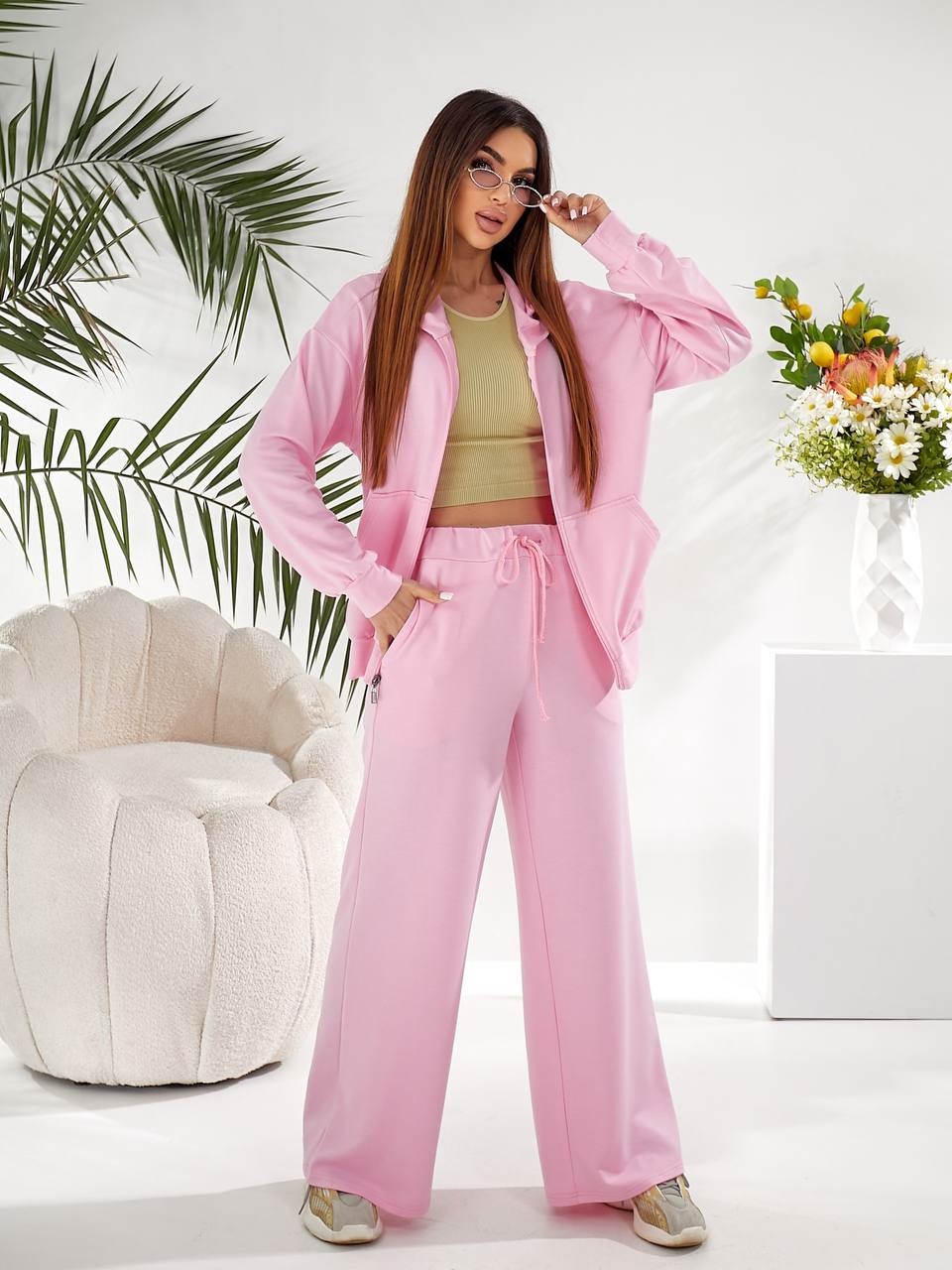 Головна » Магазин » Одяг » Жіночі спортивні костюми » Трикотажный костюм (кофта на молнии с капюшоном+свободные брюки) розовый