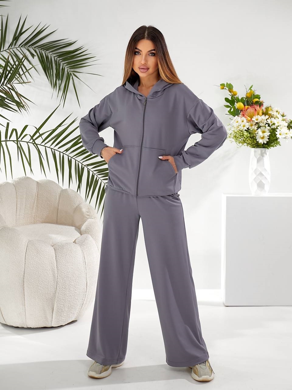 Головна » Магазин » Одяг » Жіночі спортивні костюми » Трикотажный костюм (кофта на молнии с капюшоном+свободные брюки) серый