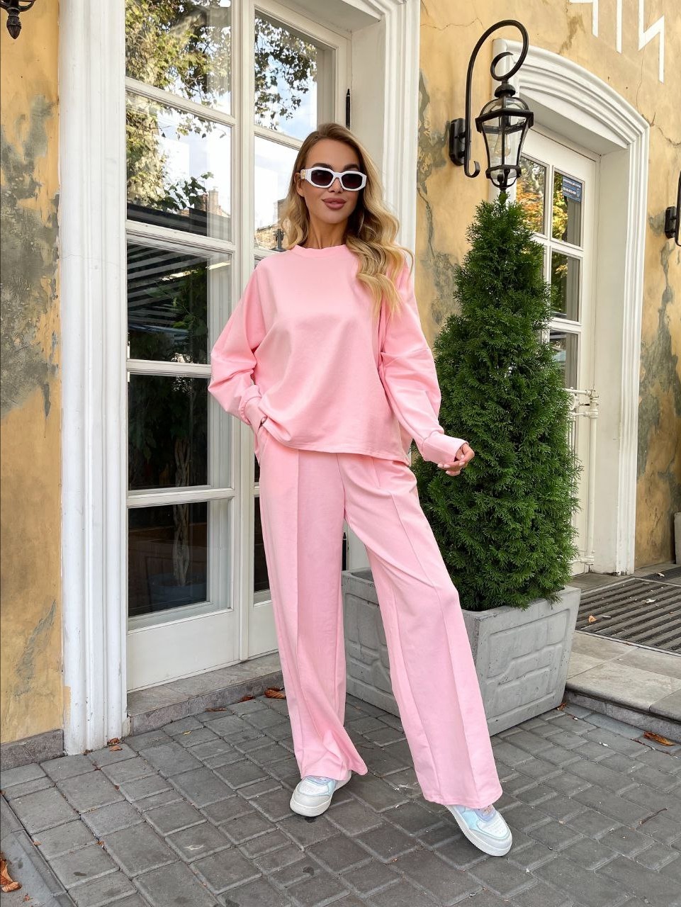 Трикотажный костюм (кофта свободного кроя+брюки со строчкой) барби