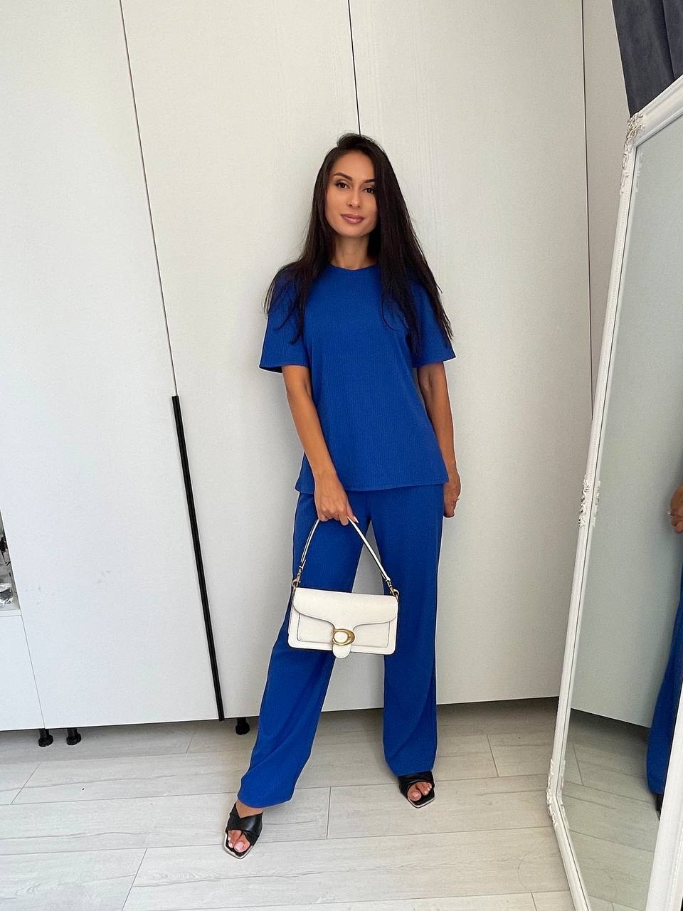 Головна » Магазин » Одяг » Жіночі костюми » Трикотажный костюм (кофточка+брюки) синий
