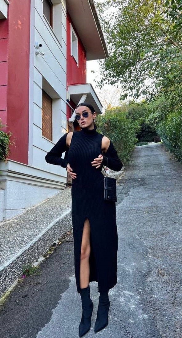 Трикотажный костюм (платье без рукавов с разрезом+укороченный кардиган) черный