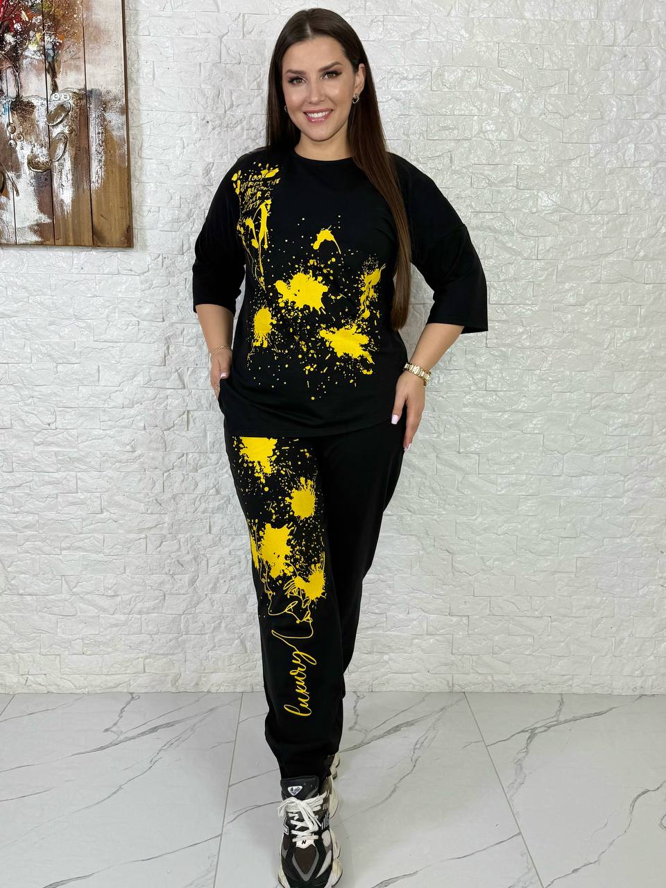 Будьте першим, хто залишив відгук “Трикотажный костюм с накатом (кофта+брюки) желтый”“