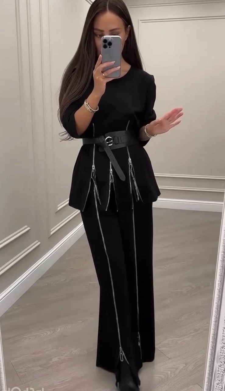 Головна » Магазин » Одяг » Жіночі костюми » Трикотажный костюм со змейками (кофта удлиненная БЕЗ ПОЯСА+юбка А-силуэта) черный