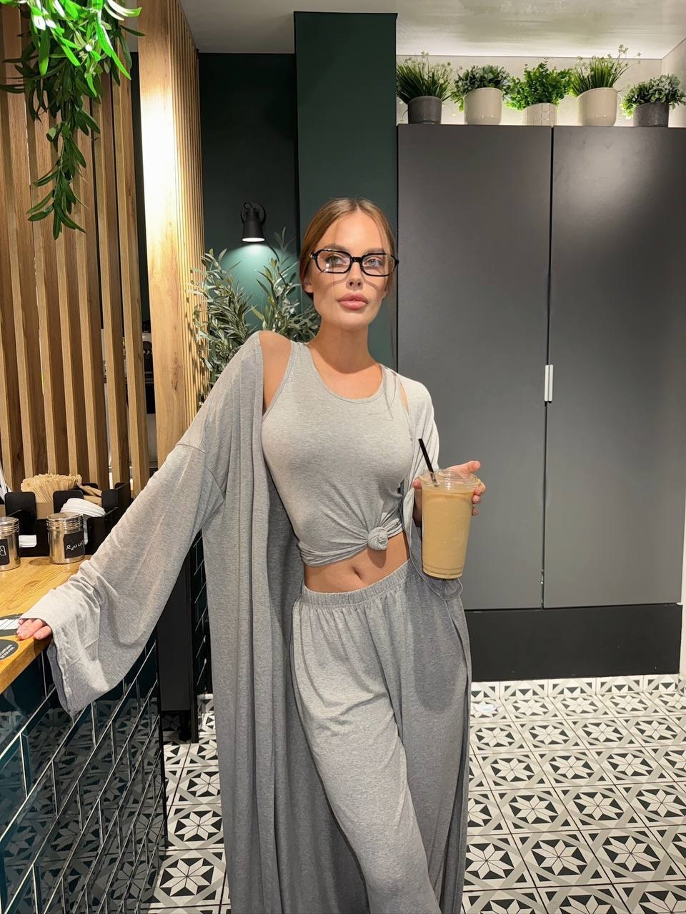 Макси кимоно, штаны палаццо оверсайз и топ американка подходит и идеально садится на любые параметры.