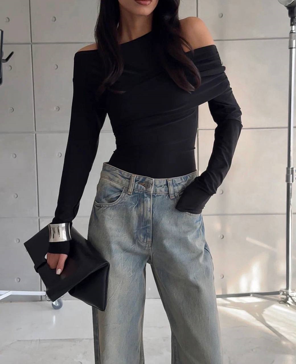 Трикотажный мягкий лонгслив двойка черный