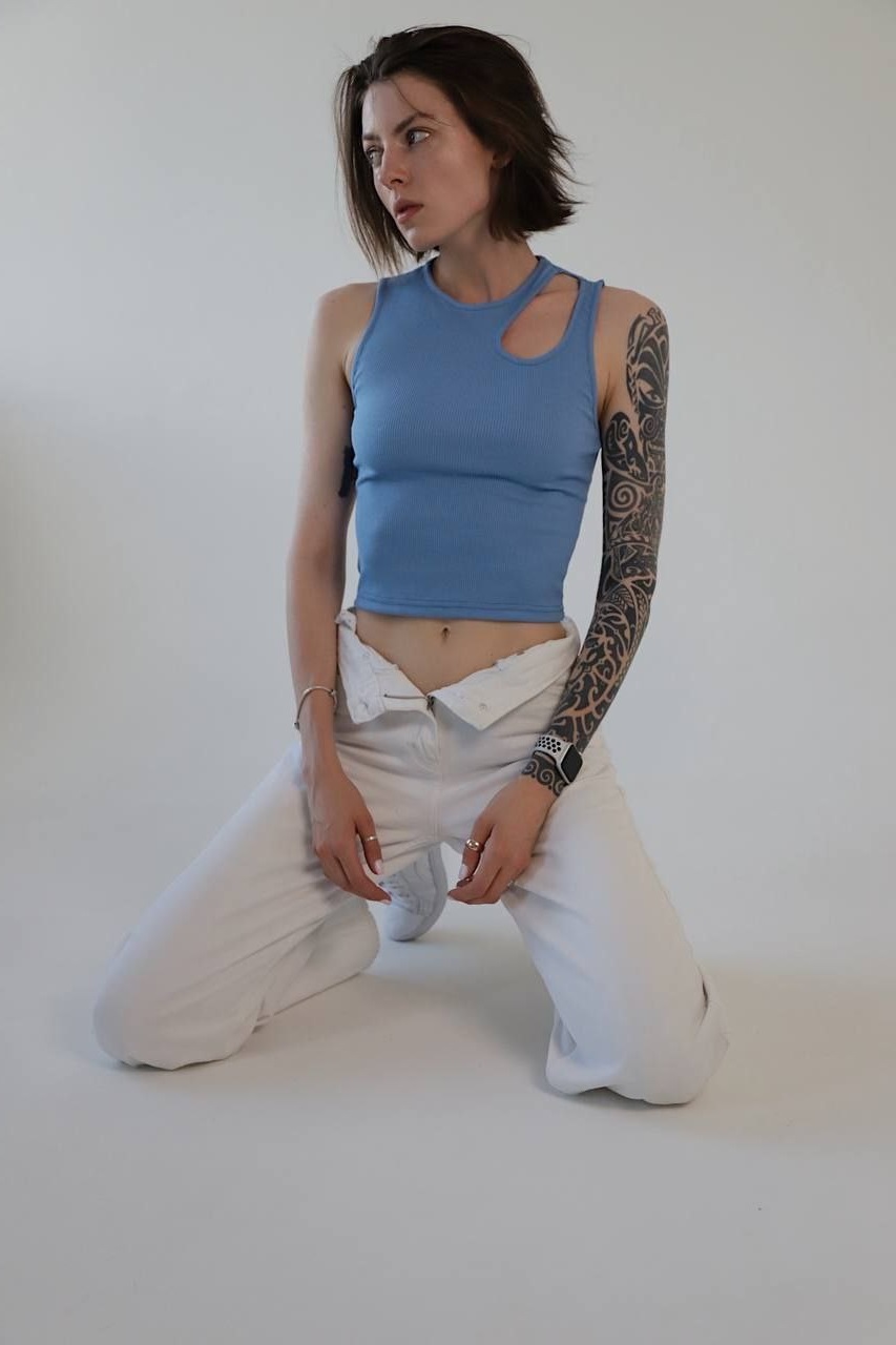 Головна » Магазин » Одяг » Верхнє тіло тіла » Трикотажный топ с акцентным вырезом голубой