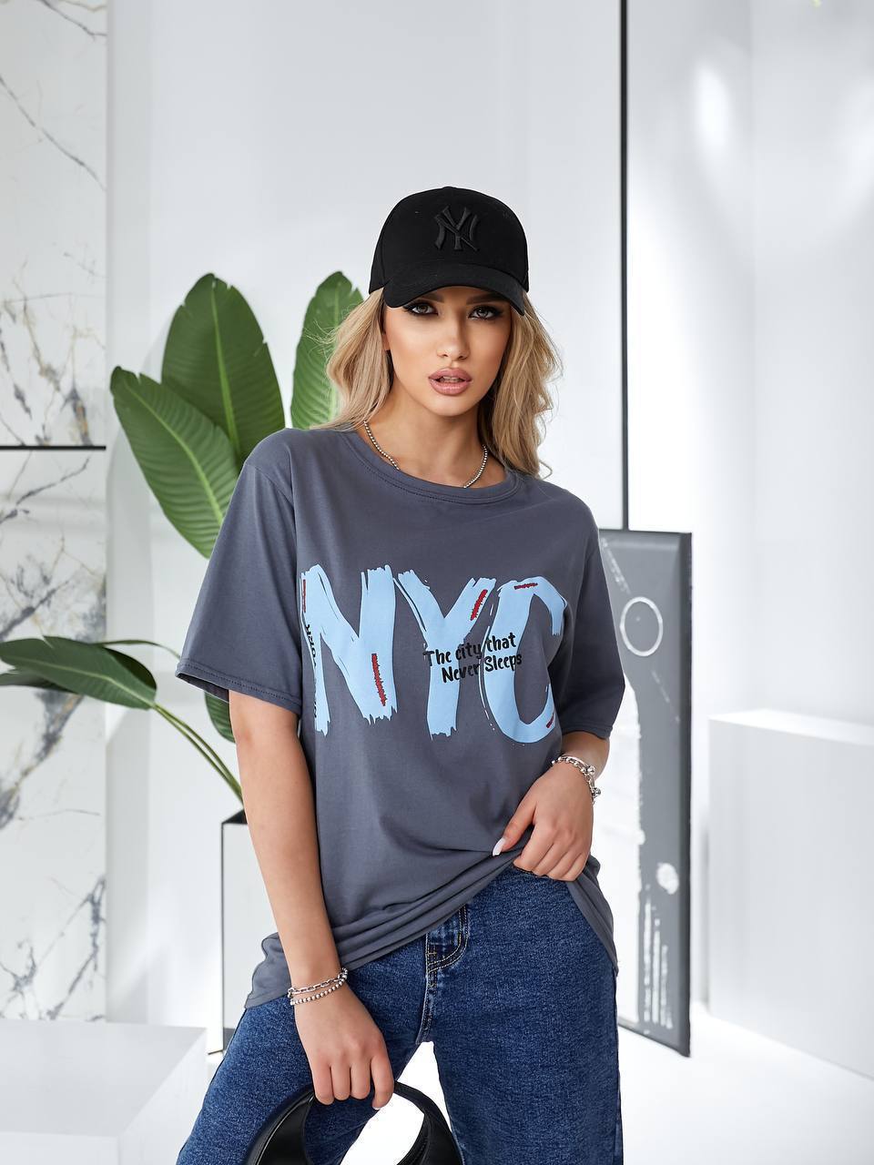 Головна » Магазин » Одяг » T -сорочки Майкі » Удлиненная футболка с коротким рукавом+накатом,хлопок, графит+голубой