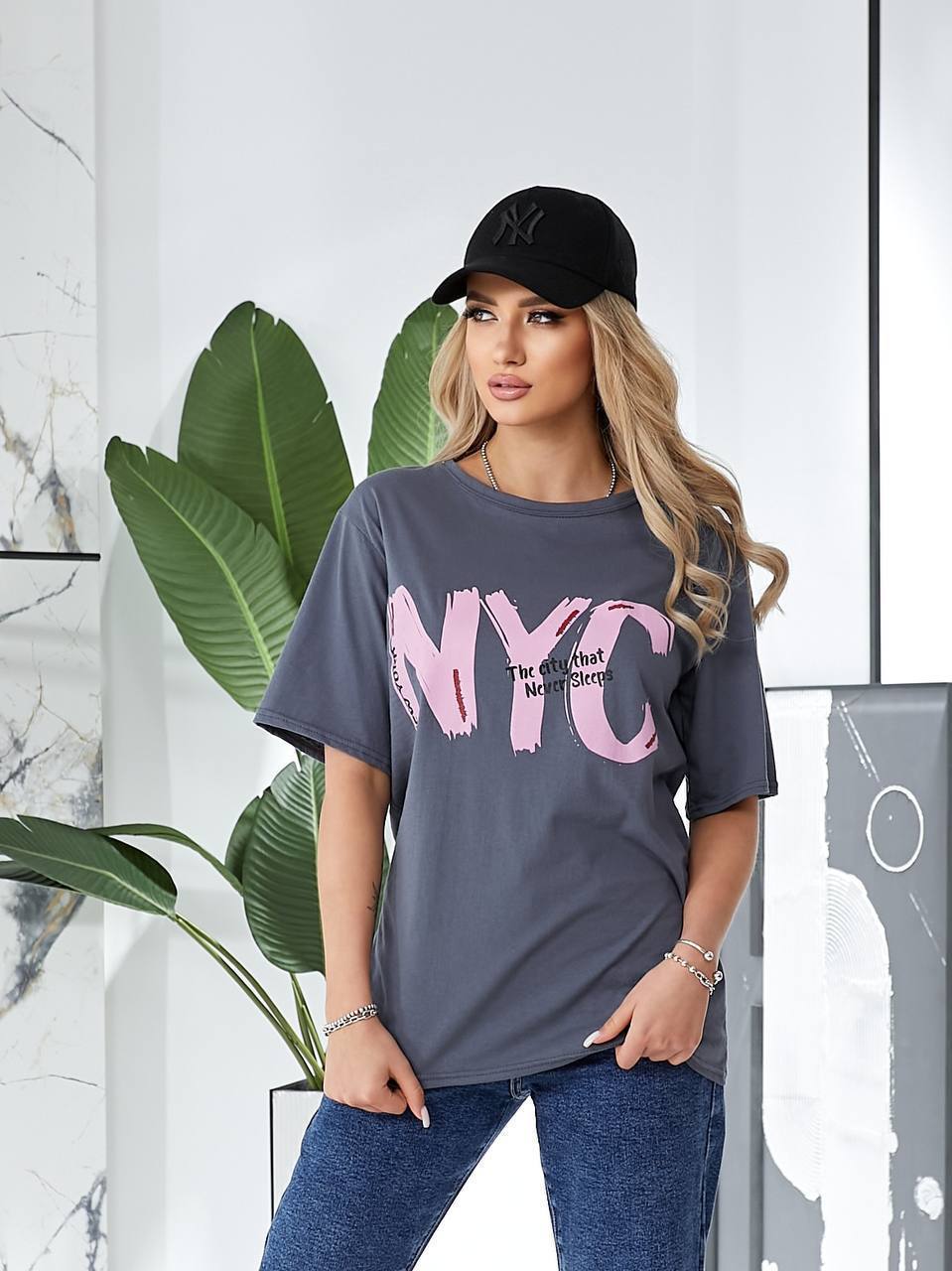 Головна » Магазин » Одяг » T -сорочки Майкі » Удлиненная футболка с коротким рукавом+накатом,хлопок, графит+розовый