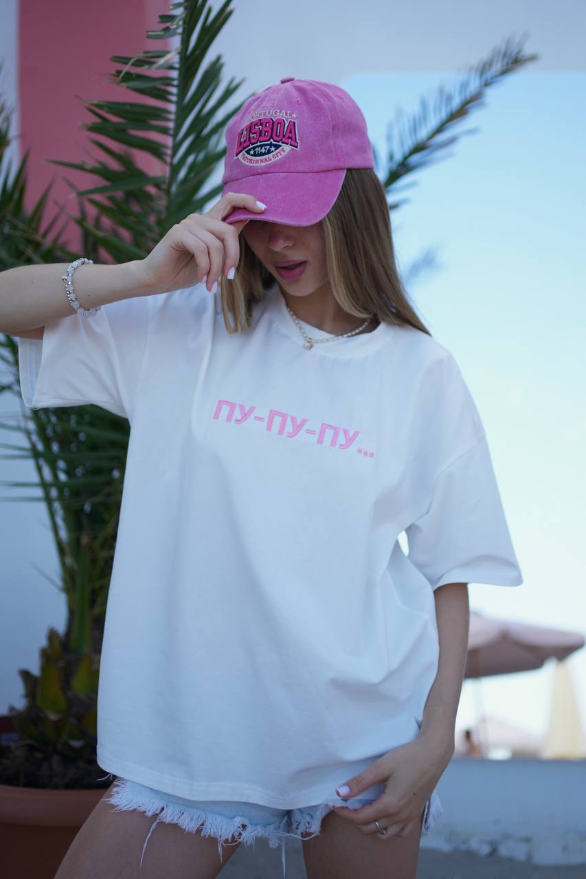 Головна » Магазин » Одяг » T -сорочки Майкі » Удлиненная Футболка со спущенным плечом свободного кроя с накатом молочный