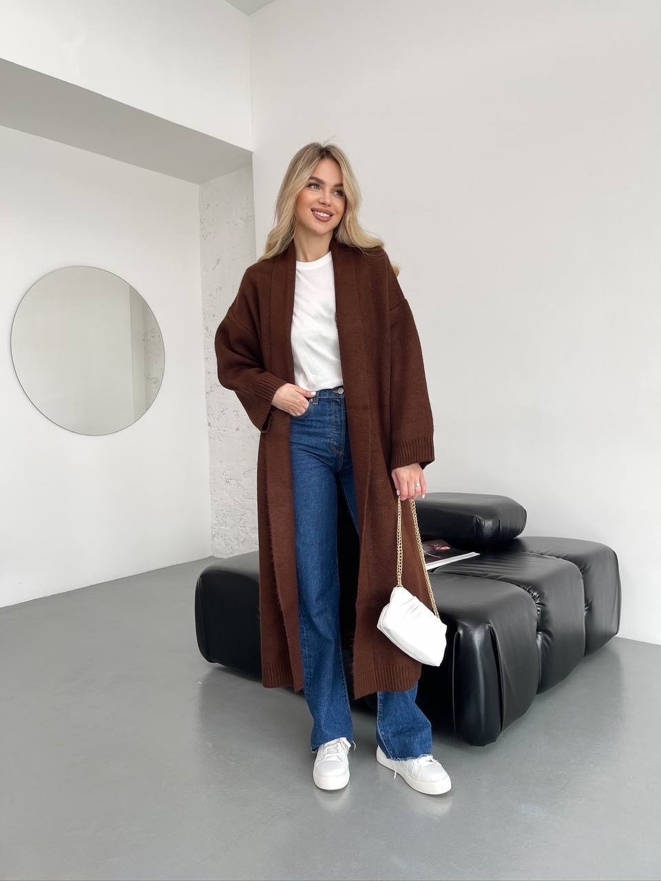 Удлиненный кардиган из мягкой пушистой пряжи шоколад