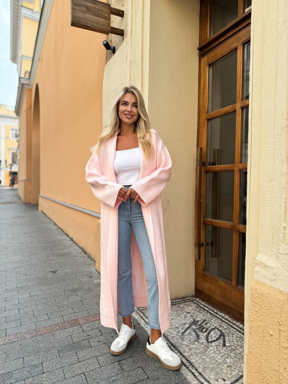 Удлиненный кардиган из мягкой пушистой пряжи розовый