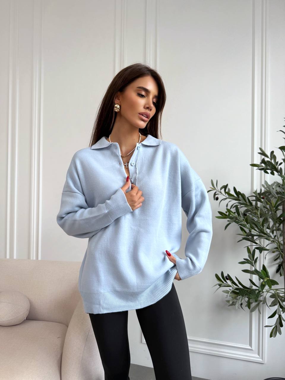 Будьте першим, хто залишив відгук “Удлиненный оверсайз свитер с воротником поло голубой”“
