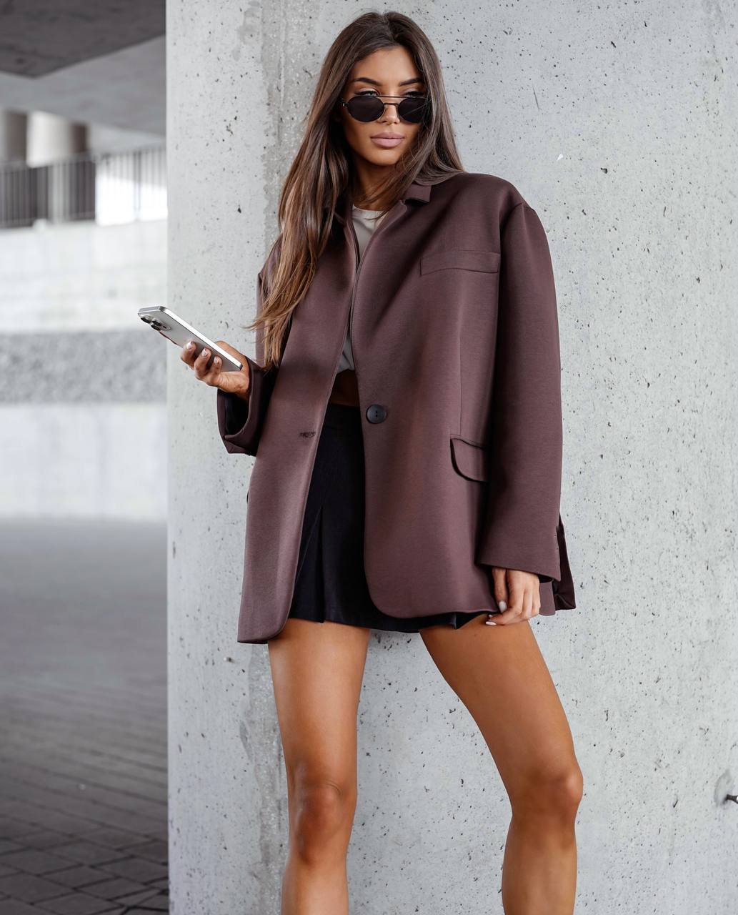 Удлиненный пиджак, свободного кроя, застегивается на пуговицу;